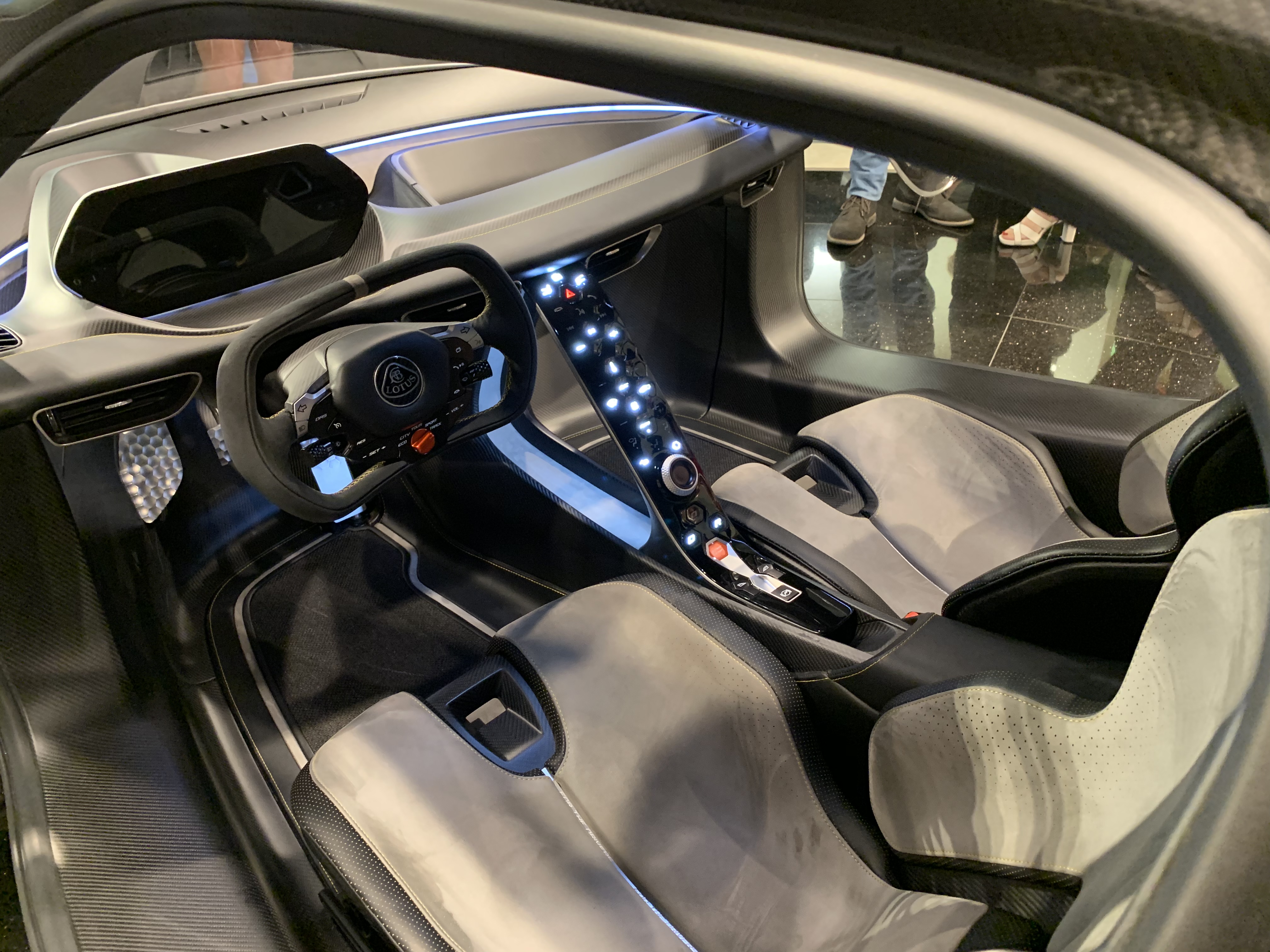 There is not a single piece of plastic in the interior. Absolutely everything is covered in Alcantara or carbon fiber. Did I mention there was no dashboard at all? The absence of mirrors is also noticeable. There are 3 very high definition screens showcasing what the conventional mirrors would, but with a better angle of view.